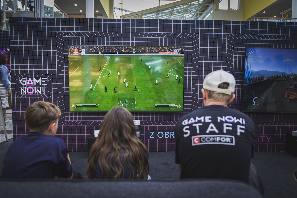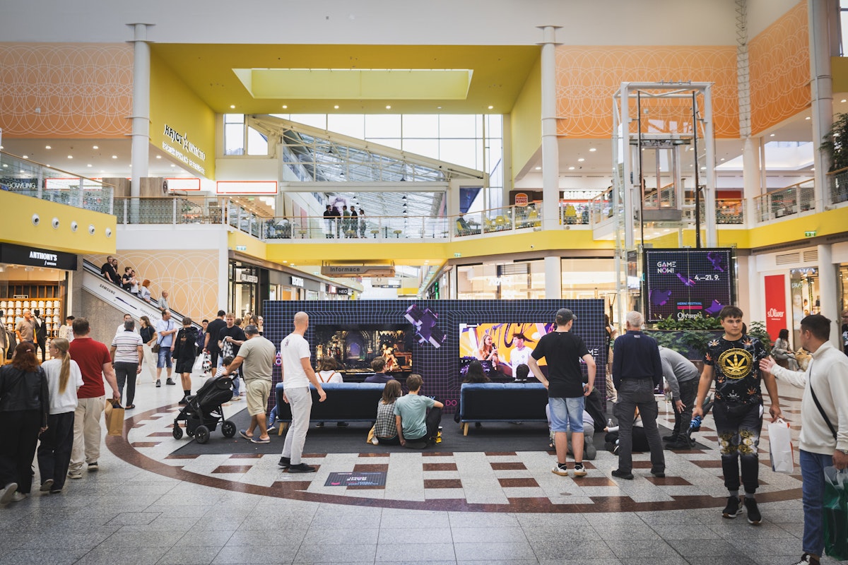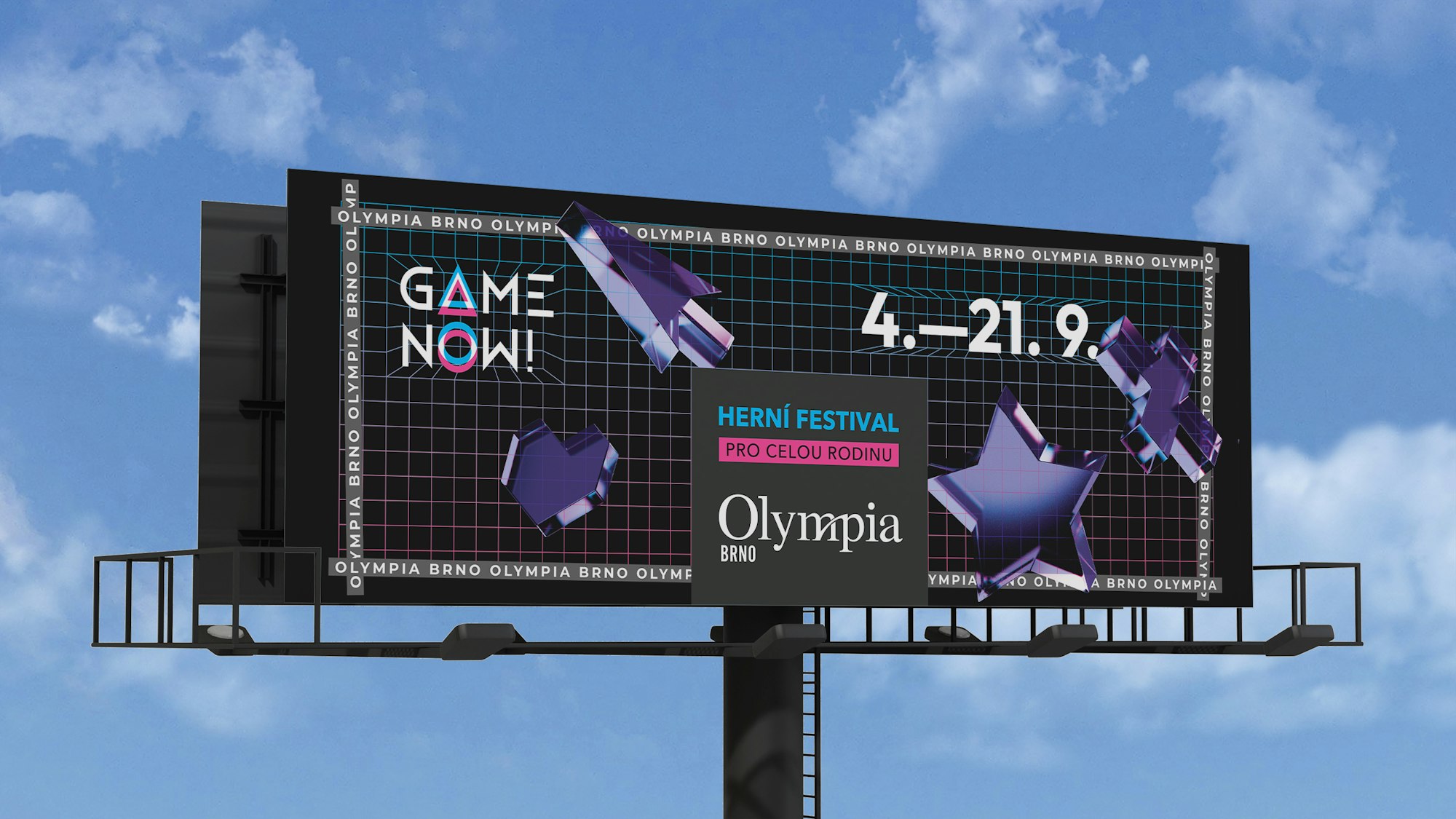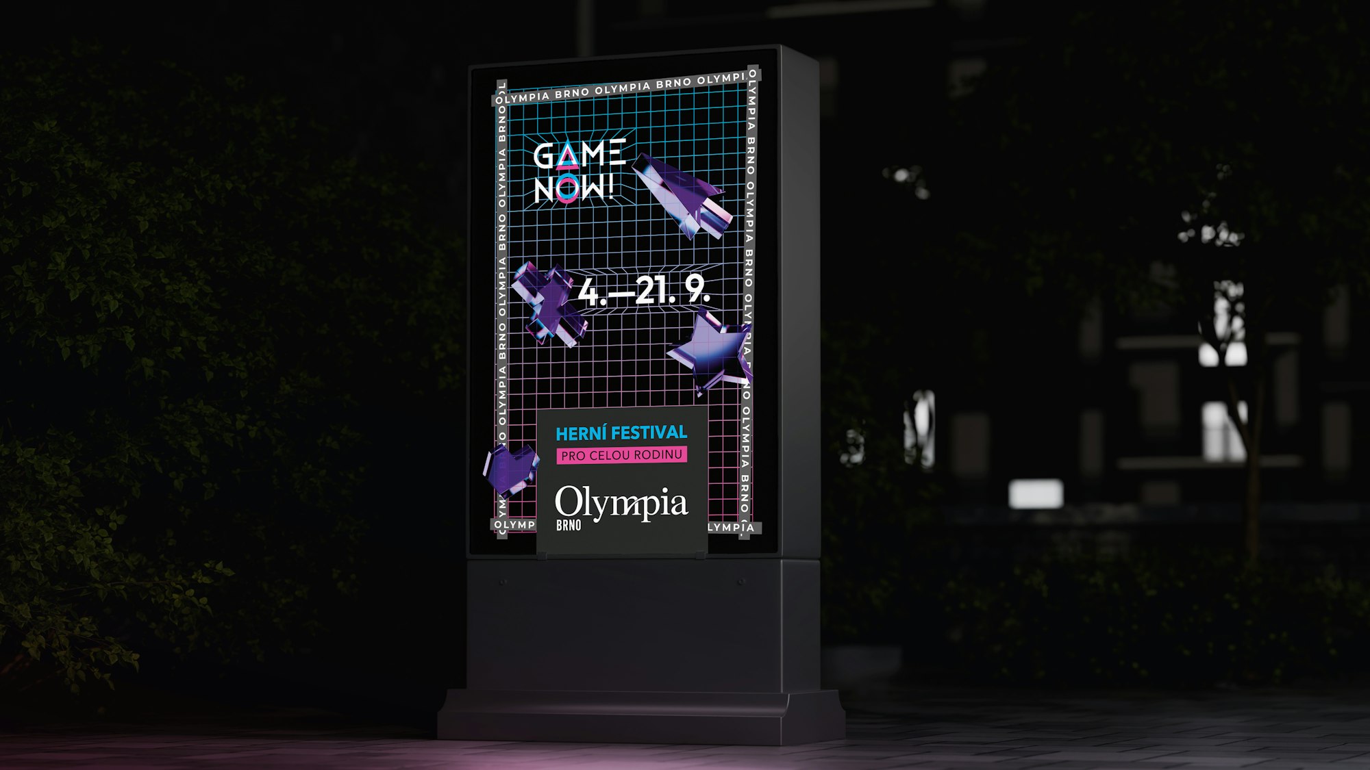 Letošní ročník jsme oblékli do nového vizuálního stylu, který spojil herní energii s moderním designem. Cílem bylo sjednotit všechny vizuály napříč kampaní i indoor plochami v Olympii – od podlahových samolepek až po dveře – a přenést atmosféru digitálního dobrodružství do každého detailu.